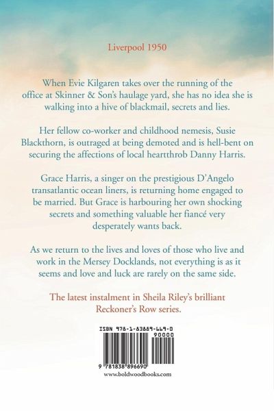 The latest instalment in Sheila Riley's brilliant Reckoner's Row series Liverpool 1950 When Evie Kilgaren takes over the running of the back office at Skinner and Son's haulage yard, she has no idea she is walking into a hive of blackmail, secrets and lies. Her fellow co-worker and childhood nemesis, Susie Blackthorn, is outraged at being demoted and is hell-bent on securing the affections of local heartthrob Danny Harris. Grace Harris, a singer on the prestigious D'Angelo transatlantic ocean liners, is returning home engaged to be married. But Grace is harbouring her own shocking secrets and something valuable her fiancé very desperately wants back. As we return to the lives and loves of those who live and work in the Mersey Docklands, not everything is as it seems and love and luck are rarely on the same side.