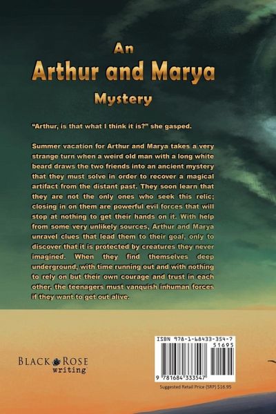 "The story is engaging, the suspense is authentic, and his characters are industrious, accessible, and great role models for the target audience." -Authors Reading "Arthur, is that what I think it is?" she gasped. Summer vacation for Arthur and Marya takes a strange turn when a weird old man with a long white beard draws the two friends into an ancient mystery that they must solve to recover a magical artifact from the distant past. They soon learn that they are not the only ones who seek this relic; closing in on them are powerful evil forces that will stop at nothing to get their hands on it. With help from some very unlikely sources, Arthur and Marya unravel clues that lead them to their goal, only to discover that it by creatures they never imagined. When they find themselves deep underground, with time running out and with nothing to rely on but their own courage and trust in each other, the teenagers must vanquish inhuman forces if they want to get out alive.