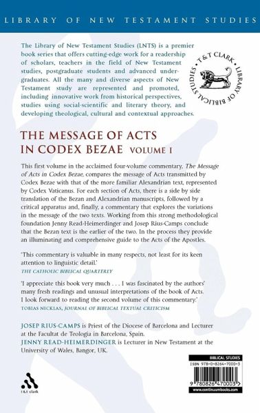 His book is a comparison of the message of Acts transmitted by Codex Bezae with that of the more familiar Alexandrian text, represented by Codex Vaticanus. For each section of Acts, there is a side by side translation of the Bezan and Alexandrian manuscripts, followed by a critical apparatus and, finally, a commentary that explores the differences in the message of the two texts. It is concluded that the Bezan text, with its interest in internal Jewish affairs and its focus on the struggles of the early disciples to free themselves from their traditional Jewish expectations and to achieve, despite their mistakes, a more accurate understanding of their master's teaching, is the earlier of the two texts.