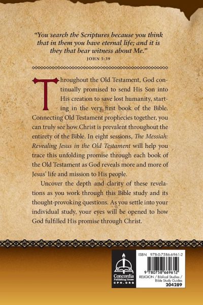 Beyond God's promise of a Savior just after the fall in Genesis 3:15, do we really see much of Christ in the Old Testament? Well, if we take His New Testament words to heart, we must! "You search the Scriptures...and it is they that bear witness to me!" (John 5:39) Over eight sessions, The Messiah: Revealing Jesus in the Old Testament will lead you through the entirety of the Old Testament with daily readings, questions, and discussion prompts. After a brief introduction that reviews Christ's earthly ministry, you will dive into the heart of the Holy Books that have spiritually nourished God's people from creation to today!
