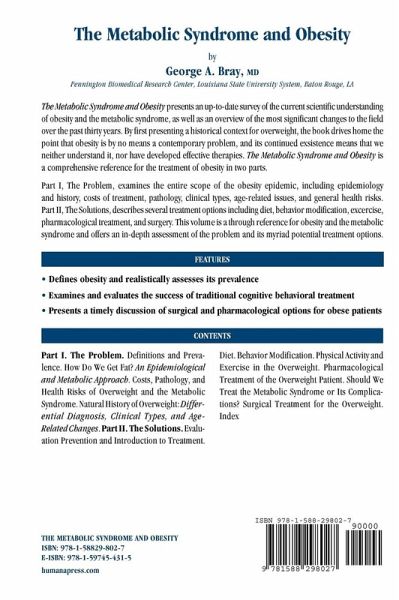 "Bray's book, The Metabolic Syndrome and Obesity, would serve as a pragmatic tutorial. ... Each chapter begins with a helpful list of take-home messages and ends with a rich supply of references. ... The author also summarizes the weight-loss effects of a number of drugs approved for conditions other than obesity ... ." (Eric Colman, Journal of the American Medical Association, Vol. 301 (15), April, 2009)