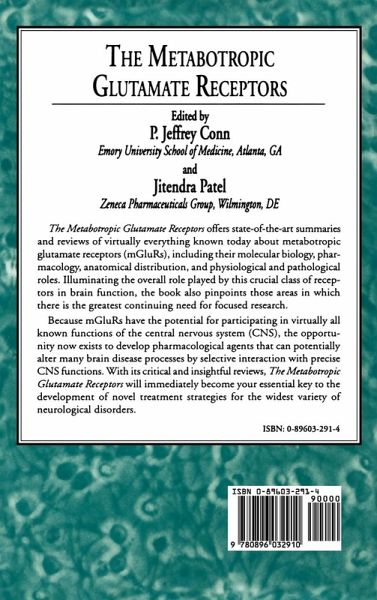 This book is an excellent review of the molecular biology, pharmacology, anatomical distribution, and physiological and pathological roles of metabotrophic glutamate receptors. It provides a substantial support for the knowledge of metabotrophic glutamate receptor role in brain function and pathology. The editors have done an excellent job in choosing the contributing authors; each one is a major figure in the specific area he or she is presenting...recommended...-Neurological Research