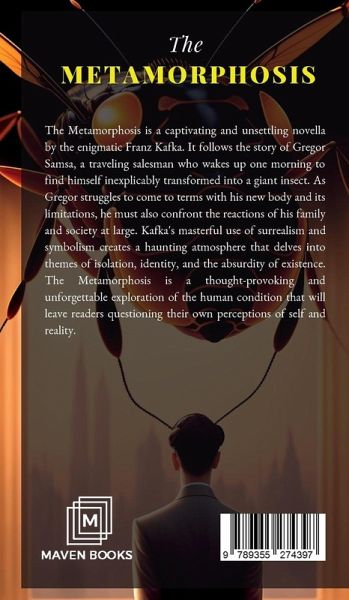 The Metamorphosis is a captivating and unsettling novella by the enigmatic Franz Kafka. It follows the story of Gregor Samsa, a traveling salesman who wakes up one morning to find himself inexplicably transformed into a giant insect. As Gregor struggles to come to terms with his new body and its limitations, he must also confront the reactions of his family and society at large. Kafka's masterful use of surrealism and symbolism creates a haunting atmosphere that delves into themes of isolation, identity, and the absurdity of existence. The Metamorphosis is a thought-provoking and unforgettable exploration of the human condition that will leave readers questioning their own perceptions of self and reality.
