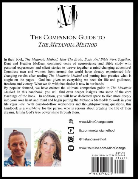 In their book, The Metanoia Method: How The Brain, Body, And Bible Work Together, Kent and Heather McKean combined years of neuroscience and Bible study with personal experiences and client stories to weave together a mind-changing adventure! Countless men and women from around the world have already experienced life-changing results after reading The Metanoia Method and putting into practice what is taught on the pages. God has given us everything we need for life and godliness, freedom and victory. What we do with that choice is now in our hands. By popular demand, we have created the ultimate companion guide to The Metanoia Method. In this handbook, you will find even deeper insights into some of the core teachings of the book. In addition, you will have dedicated space to dive more deeply into your own heart and mind and begin putting the Metanoia Method(R) to work in your life right now! With easy-to-follow worksheets and thought-provoking questions, this handbook is a must-have for the person who is serious about creating the life of their dreams, letting God's true power shine through them.