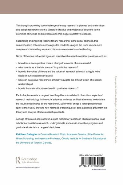 This thought-provoking book challenges the way research is planned and undertaken and equips researchers with a variety of creative and imaginative solutions to the dilemmas of method and representation that plague qualitative research. Fascinating and inspiring reading for any researcher in the Social Sciences this comprehensive collection encourages the reader to imagine the world in evermore complex and interesting ways and discover new routes to understanding. Some of the most influential figures in educational research consider questions such as: How does a socio-political context change the course of our research? What counts as a 'truthful account' in qualitative research? How do the voices of theory and the voices of 'research subjects' struggle to be heard in our research narratives? How can qualitative researchers ethically navigate the difficult terrain of research relationships? How is the material body rendered in qualitative research? Each chapter reveals a range of troubling dilemmas related to the critical aspects of research methodology in the Social Sciences and uses an illustrative case to elucidate the issues encountered by the researcher. Each writer brings a fierce philosophical spirit to her work, showing how methods or techniques of data-gathering grow from the theory and analysis of how research proceeds. A range of topics are addressed in a cross-disciplinary approach which will appeal to all scholars of qualitative research, undergraduate students in education programs and graduate students in a range of disciplines