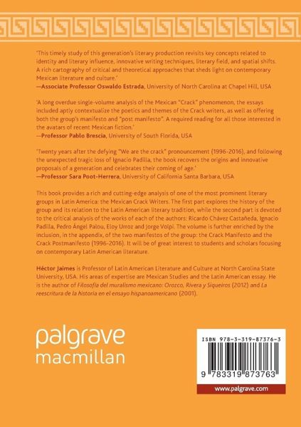 This book provides a rich and cutting-edge analysis of one of the most prominent literary groups in Latin America: the Mexican Crack Writers. The first part explores the history of the group and its relation to the Latin American literary tradition, while the second part is devoted to the critical analysis of the works of each of the authors: Ricardo Chávez Castañeda, Ignacio Padilla, Pedro Ángel Palou, Eloy Urroz and Jorge Volpi. The volume is further enriched by the inclusion, in the appendix, of the two manifestos of the group: the Crack Manifesto and the Crack Postmanifesto (1996-2016). It will be of great interest to students and scholars focusing on contemporary Latin American literature.