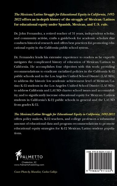 The Mexican/Latino Struggle for Educational Equity in California, 1492-2022 offers an in-depth history of the struggle of Mexican/Latinos for educational equity under Spanish, Mexican, and U.S. rule. Dr. John Fernandez, a retired teacher of 31 years, independent scholar, and community activist, crafts a guidebook for academic scholars that conducts historical research and offers best practices for promoting educational equity in the California public school system. Dr. Fernandez lends his extensive experience to readers as he expertly navigates the complicated history of education of Mexican/Latinos in California. He accomplishes four objectives with this work: providing recommendations to eradicate racialized policies in the California K-12 public schools and in the Los Angeles Unified School District (LAUSD); to address the historic low academic achievement level of Mexican/Latino K-12 students in the Los Angeles Unified School District (LAUSD); to address California and LAUSD charter school issues and accountability; and to significantly increase educational equity for Mexican/Latinos students in California's K-12 public schools in general and the LAUSD from grades K-12. The Mexican/Latino Struggle for Educational Equity in California, 1492-2022 offers policy makers, K-12 teachers, and college professors a substantial amount of educational data and program recommendations to promote educational equity strategies for K-12 Mexican/Latino student populations.