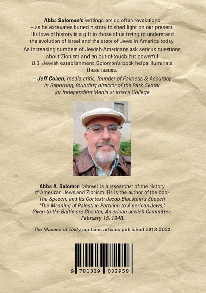 Miasma of Unity: Jews and Israel contains a decade's articles by researcher Abba A. Solomon clearing the fog and deception which has obscured Jewish life in the 100-plus traumatizing years since the emergence of the Zionist political project.