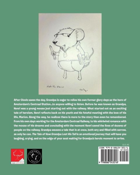 After Clovis saves the day, Grandpa is eager to relive his own former glory days as the hero of Amsterdam's Centraal Station...to anyone willing to listen. Before he was known as Grandpa, Henri was a young mouse just starting out with the railway. What started out as an exciting tale of heroism, Henri reflects back on his youth and his fateful meeting with the love of his life, Marion. Along the way, he realizes there is more to the story than even he remembered. From his own days working for the Amsterdam Centraal Railway, to his whirlwind romance with the mouse of his dreams and concluding with the moment Henri saved the lives of dozens of people on the railway, Grandpa weaves a tale that is at once, both wry and filled with sorrow, as only he can. The Tale of How Grandpa Lost His Tail is an emotional journey that will have you laughing, crying, and on the edge of your seat waiting for Grandpa's heroic moment to arrive.