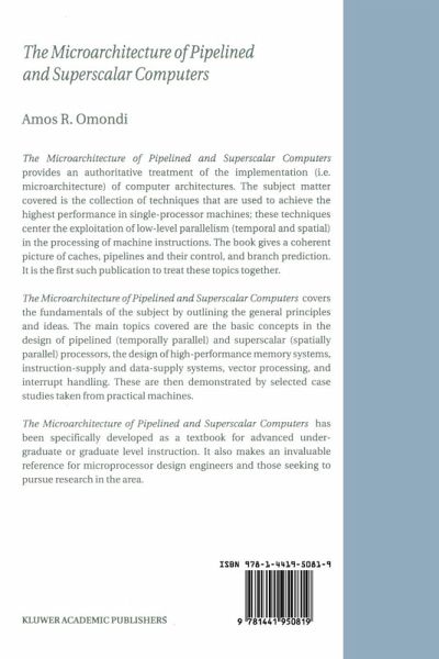 This book is intended to serve as a textbook for a second course in the im plementation (Le. microarchitecture) of computer architectures. The subject matter covered is the collection of techniques that are used to achieve the highest performance in single-processor machines; these techniques center the exploitation of low-level parallelism (temporal and spatial) in the processing of machine instructions. The target audience consists students in the final year of an undergraduate program or in the first year of a postgraduate program in computer science, computer engineering, or electrical engineering; professional computer designers will also also find the book useful as an introduction to the topics covered. Typically, the author has used the material presented here as the basis of a full-semester undergraduate course or a half-semester post graduate course, with the other half of the latter devoted to multiple-processor machines. The background assumed of the reader is a good first course in computer architecture and implementation - to the level in, say, Computer Organization and Design, by D. Patterson and H. Hennessy - and familiarity with digital-logic design. The book consists of eight chapters: The first chapter is an introduction to all of the main ideas that the following chapters cover in detail: the topics covered are the main forms of pipelining used in high-performance uniprocessors, a taxonomy of the space of pipelined processors, and performance issues. It is also intended that this chapter should be readable as a brief "stand-alone" survey.