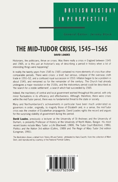 Historians, like politicians, thrive in crises. Was there really a crisis in England between 1545 and 1565, or is this just a way of describing a period in history when a lot of interesting things where happening? In reality the twenty years from 1545 to 1565 contained no more elements of crisis than other comparable periods. There were crises: a brief, but serious collapse of the overseas cloth trade in 1551-52, and a confused royal succession in 1553. Inflation began to be a problem in about 1545, and remained so for the remainder of the century. The Church had already undergone a major revolution in the 1530s, and the mid-century period could be described as the 'search for a stable settlement', a search had succeeded by 1565. Indeed, the machinery of central and local government worked throughout this period, with only minor fluctuations in its efficiency and effectiveness. Although, therefore, there were crises within in the mid-Tudor period, there was no fundamental threat to the state or society Mary and Northumberland's achievements in particular have been much underrated as governors in order, originally, to magnify those of Elizabeth propaganda. DAVID LOADES rights the record and argues for the surprising stability of government during this period