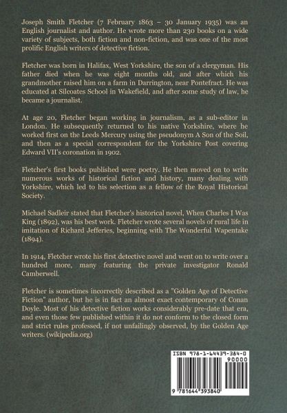 Joseph Smith Fletcher (7 February 1863 - 30 January 1935) was an English journalist and author. He wrote more than 230 books on a wide variety of subjects, both fiction and non-fiction, and was one of the most prolific English writers of detective fiction. Fletcher was born in Halifax, West Yorkshire, the son of a clergyman. His father died when he was eight months old, and after which his grandmother raised him on a farm in Darrington, near Pontefract. He was educated at Silcoates School in Wakefield, and after some study of law, he became a journalist. At age 20, Fletcher began working in journalism, as a sub-editor in London. He subsequently returned to his native Yorkshire, where he worked first on the Leeds Mercury using the pseudonym A Son of the Soil, and then as a special correspondent for the Yorkshire Post covering Edward VII's coronation in 1902. Fletcher's first books published were poetry. He then moved on to write numerous works of historical fiction and history, many dealing with Yorkshire, which led to his selection as a fellow of the Royal Historical Society. Michael Sadleir stated that Fletcher's historical novel, When Charles I Was King (1892), was his best work. Fletcher wrote several novels of rural life in imitation of Richard Jefferies, beginning with The Wonderful Wapentake (1894). In 1914, Fletcher wrote his first detective novel and went on to write over a hundred more, many featuring the private investigator Ronald Camberwell. Fletcher is sometimes incorrectly described as a "Golden Age of Detective Fiction" author, but he is in fact an almost exact contemporary of Conan Doyle. Most of his detective fiction works considerably pre-date that era, and even those few published within it do not conform to the closed form and strict rules professed, if not unfailingly observed, by the Golden Age writers. (wikipedia.org)
