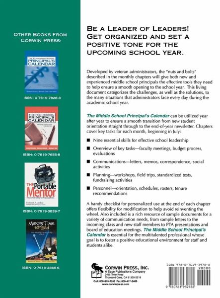 Developed by veteran administrators, the "nuts and bolts" described in the monthly chapters will give middle school principals the tools they need to help ensure a trouble-free opening to the school year.