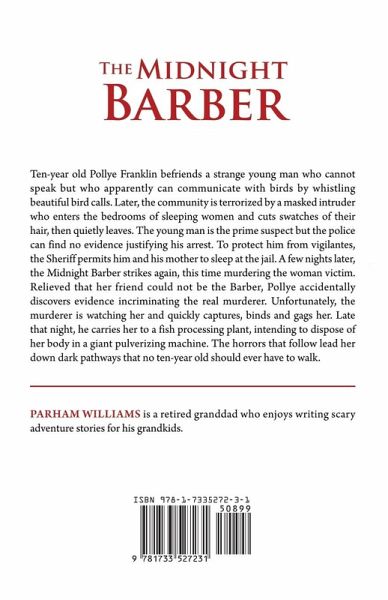 Ten-year old Pollye Franklin befriends a strange young man who cannot speak but who can communicate with birds by whistling beautiful bird calls. Later, the community is terrorized by a masked intruder who enters the bedrooms of sleeping women and cuts swatches of their hair, then quietly leaves. The young man is the prime suspect but the police can find no evidence justifying his arrest. To protect him from vigilantes, the Sheriff permits the young man to sleep each night in the jail. Several nights later, while the young man is safely in jail, the Midnight Barber strikes again, this time murdering his victim. Relieved that her friend could not be the Barber, Pollye accidentally discovers evidence incriminating the real murderer. Unfortunately, the murderer is watching her and quickly captures, binds and gags her. Later that night he carries her to a fish processing plant, intending to dispose of her in a giant pulverizing machine. The horrors that follow lead Pollye down dark pathways that no ten-year old should have to walk.