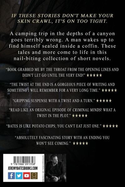 USA TODAY and #1 AMAZON bestselling author Jeremy Bates brings you the complete collection of the award-winning Midnight Book Club short novels, which have been praised for their fast-paced plots and brilliant twists. As a bonus, you also get a digital copy of the runaway bestseller The Taste of Fear, which has garnered more than 500 five-star reviews. In total, that's over 1000 pages of pulse-pounding suspense, action, and terror from one of the most thrilling horror writers in the business today! Get your copy today! Praise for Jeremy Bates: "A master storyteller!" ¿¿¿¿¿ "Best book I've read to date" ¿¿¿¿¿ "Old-school horror story reminiscent of Stephen King" ¿¿¿¿¿ "Perfect for Laymon fans!" ¿¿¿¿¿ "Definitely recommend to all fans of modern horror" ¿¿¿¿¿ "Any Stephen King or Dean Koontz fan will love it" ¿¿¿¿¿ "I sort of fell into Jeremy Bates by accident, and I'm so glad I did. He's one of my new favorite writers, and I urge everyone to check him out" ¿¿¿¿¿ "The most chilling book I’ve ever read!" ¿¿¿¿¿ "Definitely gave me chills reading this late at night which hasn't happened since I was a 13-year-old teenager reading Stephen King's It for the first time" ¿¿¿¿¿ "Absolutely loved this book" ¿¿¿¿¿ "Non-stop adrenaline rush from beginning to end" ¿¿¿¿¿ "I was hooked from the first page!" ¿¿¿¿¿ "Binge-worthy!" ¿¿¿¿¿ "I had to stop reading at certain points because he was freaking me out. That only happens to me with one other writer - Stephen King" ¿¿¿¿¿ "This is one of the best books I have ever read!" ¿¿¿¿¿ "A very juicy, scary ride" ¿¿¿¿¿ "Suicide Forest is up there with Joe Hill's Heart Shaped Box" ¿¿¿¿¿ "Scariest book I've ever read" ¿¿¿¿¿ "Huge fan of Mr Bates! You won't be disappointed" ¿¿¿¿¿ "Edge-of-my-seat experience! I felt I was indeed living the horror" ¿¿¿¿¿ "Page-turner with a twist! I was hanging on to every word!" ¿¿¿¿¿ "I found it rivaling some of Stephen King's and Dean Koontz's early works - high praise indeed" ¿¿¿¿¿ "One of the greatest suspense-filled books I have ever read" ¿¿¿¿¿ "If you enjoy Richard Laymon , you'll love reading Jeremy Bates" ¿¿¿¿¿ "A true edge-of-your-seat thriller...I couldn't put it down!" ¿¿¿¿¿ "Startlingly Spooky!" ¿¿¿¿¿ "A non-stop page-turner!" ¿¿¿¿¿ "Early Stephen King, Robert McCammon, Jeremy Bates is a must read!" ¿¿¿¿¿ "As usual Jeremy Bates has done it again... Give him a try, you'll not regret it" ¿¿¿¿¿