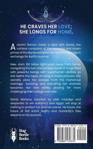 He craves her love. She longs for home. ___ Autumn Ramon made a deal with Dante, the ruthless conqueror of the Universes and crown prince of the Martyne Empire: her hand in marriage in exchange for Earth's survival. Now, she's 100 billion light-years away from home, navigating the lush and perilous world of Surge filled with powerful beings with superhuman abilities. As she learns the ropes of being a crown princess, she secretly plots her escape from the monstrous marriage. Surviving and outwitting her enemies becomes her new reality, proving far more challenging than college ever was. Dante Martyne, haunted by past mistakes and desperate to win Autumn's love again, will stop at nothing to protect her and her planet. His future, the future of the entire realm, and humanity's fate depend on his success.