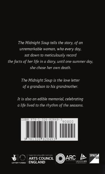 The Midnight Soup tells the story, of an unremarkable woman, who every day, sat down to meticulously record the facts of her life in a diary, until one summer day, she chose her own death. The Midnight Soup is the love letter of a grandson to his grandmother. It is also an edible memorial, celebrating a life lived to the rhythm of the seasons.