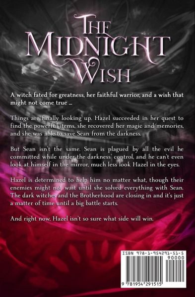 A witch fated for greatness, her faithful warrior, and a wish that might not come true ... Things are finally looking up. Hazel succeeded in her quest to find the powerful items, she recovered her magic and memories, and she was able to save Sean from the darkness. But Sean isn't the same. Sean is plagued by all the evil he committed while under the darkness' control, and he can't even look at himself in the mirror, much less look Hazel in the eyes. Hazel is determined to help him no matter what, though their enemies might not wait until she solved everything with Sean. The dark witches and the Brotherhood are closing in and it's just a matter of time until a big battle starts. And right now, Hazel isn't so sure what side will win. The Midnight Wish is the sixth book in the Rite World: Lightgrove Witches series-full of magic, romance, mystery, and excitement! Grab your copy today and start this new adventure! Rite World: Lightgrove Witches The Midnight Test (book 1) The Midnight Spell (book 2) The Midnight Flame (book 3) The Midnight Secret (book 4) The Midnight Hunt (book 5) The Midnight Wish (book 6)