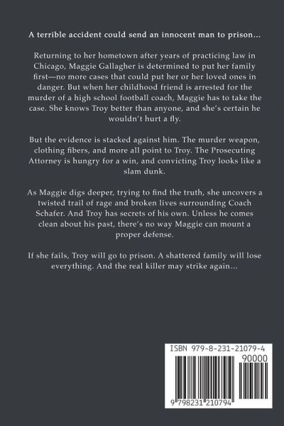 A terrible accident could send an innocent man to prison... Returning to her hometown after years of practicing law in Chicago, Maggie Gallagher is determined to put her family first-no more cases that could put her or her loved ones in danger. But when her childhood friend is arrested for the murder of a high school football coach, Maggie has to take the case. She knows Troy better than anyone, and she's certain he wouldn't hurt a fly. But the evidence is stacked against him. The murder weapon, clothing fibers, and more all point to Troy. The Prosecuting Attorney is hungry for a win, and convicting Troy looks like a slam dunk. As Maggie digs deeper, trying to find the truth, she uncovers a twisted trail of rage and broken lives surrounding Coach Schafer. And Troy has secrets of his own. Unless he comes clean about his past, there's no way Maggie can mount a proper defense. If she fails, Troy will go to prison. A shattered family will lose everything. And the real killer may strike again...