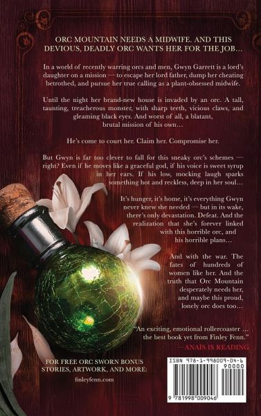 Orc Mountain needs a midwife. And this devious orc wants her for the job... In a world of recently warring orcs and men, Gwyn Garrett is a lord's daughter on a mission - to escape her lord father, dump her cheating betrothed, and pursue her true calling as a plant-obsessed midwife. Until the night her brand-new house is invaded by an orc. A tall, taunting, treacherous monster, with sharp teeth, vicious claws, and gleaming black eyes. And worst of all, a blatant, brutal mission of his own... He's come to court her. Claim her. Compromise her. But Gwyn is far too clever to fall for this sneaky orc's schemes - right? Even if he moves like a graceful god, if his voice is sweet syrup in her ears. If his low, mocking laugh sparks something hot and reckless, deep in her soul... It's hunger, it's home, it's everything Gwyn never knew she needed - but in its wake, there's only devastation. Defeat. And the realization that she's forever linked with this horrible orc, and his horrible plans... And with the war. The fates of hundreds of women like her. And the truth that Orc Mountain desperately needs her, and maybe this proud, lonely orc does too... ______ Hardcover edition also includes a bonus epilogue!