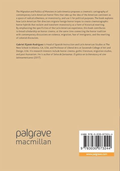 The Migration and Politics of Monsters in Latin America proposes a cinematic cartography of contemporary Latin American horror films that take up the idea of the American continent as a space of radical otherness, or monstrosity, and use it for political purposes. The book explores how Latin American film directors migrate foreign horror tropes to create cinematographic horror hybrids that reclaim and transform monstrosity as a form of historical rewriting. By emphasizing the specificities of the Latin American experience, this book contributes to broad scholarship on horror cinema, at the same time connecting the horror tradition with contemporary discussions on violence, migration, fear of immigrants, and the rewriting of colonial discourses.
