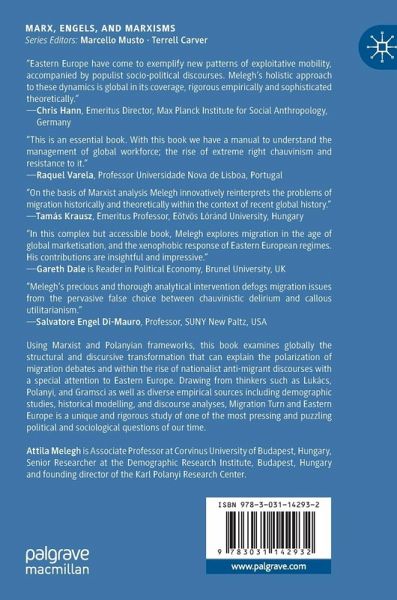 Using Marxist and Polanyian frameworks, this book examines the structural and discursive transformation that can explain the polarization of migration debates and within the rise of nationalist anti-migrant discourses in Europe with a special attention to Eastern Europe and Hungary. It goes beyond the mainstream explanations of these phenomena that uses nationalist propaganda as causal factors and instead argues that the rise of anti-immigration currents cannot be understood without a dialectical and historical analysis of the material and discursive transformations, most importantly marketization and related reification. Drawing from thinkers such as Lukács, Polanyi, and Gramsci as well as diverse empirical sources including demographic studies, historical modelling, and discourse analyses, Migration Turn and Eastern Europe is a unique and rigorous study of one of the most pressing and puzzling political and sociological questions of ourtime.
