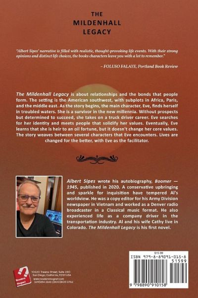 The Mildenhall Legacy is about relationships and the bonds that people form. The setting is the American southwest, with subplots in Africa, Paris, and the middle east. As the story begins, the main character, Eve, finds herself in troubled waters. She is a survivor in the new millennia. Without prospects but determined to succeed, she takes on a truck driver career. Eve searches for her identity and meets people that solidify her values. Eventually, Eve learns that she is heir to an oil fortune, but it doesn't change her core values. The story weaves between several characters that Eve encounters. Lives are changed for the better, with Eve as the facilitator.