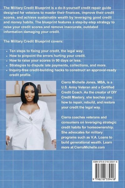 The Military Credit Blueprint is a do-it-yourself credit repair guide designed for veterans to master their finances, improve their credit scores, and achieve sustainable wealth by leveraging good credit and money habits. The blueprint features a step-by-step strategy to raise your credit scores and remove inaccurate, outdated information damaging your credit. The Military Credit Blueprint covers:Ten steps to fixing your credit, the legal way. How to pinpoint the errors hurting your credit. How to raise your scores in 90 days or less. Strategies to dispute late payments, collections, and more. Inquiry-free credit-building hacks to construct an approval-ready credit profile.