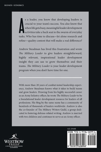 As a leader, you know that developing leaders is crucial to your team's success. You also know that when life gets busy, meaningful leader development activities take a back seat to the swarm of everyday tasks. Who has time to discuss-let alone research and refine-quality content that will make a real difference? Andrew Steadman has lived this frustration and wrote The Military Leader to give leaders straightforward, highly relevant, inspirational leader development insight they can use to grow themselves and their teams. The Military Leader is your leader development program when you don't have time for one.