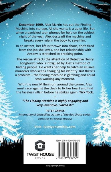 December 1999. Alex Martin has put the Finding Machine into storage. All she wants is a quiet life. But when a panicked teen phones for help on the coldest night of the year, Alex dusts off the machine and breaks every rule in the book to save him. In an instant, her life is thrown into chaos, she's fired from the job she loves, and her relationship with Antony is stretched to breaking point. The rescue attracts the attention of Detective Henry Longhurst, who is intrigued by Alex's method of finding people. He wants her help to catch an elusive murderer who keeps changing his identity. But there's a problem-the finding machine is glitching and could stop working any moment. With the new Millennium around the corner, Alex must race against the clock to fix her heart and find the faceless villain before he strikes again. Tick Tock.
