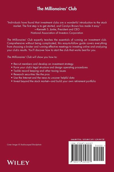 "Individuals have found that investment clubs are a wonderful introduction to the stock market. The first step is to get started, and Carolyn Brown has made it easy."-Kenneth S. Janke, President and CEO, National Association of Investors Corporation The Millionaires' Club expertly teaches the essentials of running an investment club. Comprehensive without being complicated, this easy-to-follow guide covers everything from choosing a broker and running effective meetings to investing online and analyzing your club's results. You'll discover how to start the club that works best for you. The Millionaires' Club will show you how to: * Recruit members and develop an investment strategy * Form your club's legal structure and design operating procedures * Tackle record keeping and other taxing issues * Research securities like the pros * Use the Internet and the news to uncover helpful data * Invest beyond the stock market-and build your own retirement portfolio Special Bonus To help you stay abreast of the latest business and money management information, Black Enterprise is pleased to offer: * A free issue of Black Enterprise magazine * A discount coupon for savings off the registration fee at Black Enterprise Events (See inside coupons for details.)
