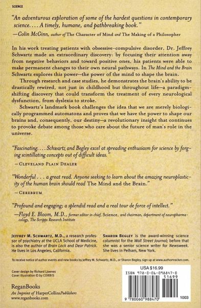A groundbreaking work of science that confirms, for the first time, the independent existence of the mind-and demonstrates the possibilities for human control over the workings of the brain. Conventional science has long held the position that 'the mind' is merely an illusion, a side effect of electrochemical activity in the physical brain. Now in paperback, Dr Jeffrey Schwartz and Sharon Begley's groundbreaking work, The Mind and the Brain, argues exactly the opposite: that the mind has a life of its own.Dr Schwartz, a leading researcher in brain dysfunctions, and Wall Street Journal science columnist Sharon Begley demonstrate that the human mind is an independent entity that can shape and control the functioning of the physical brain. Their work has its basis in our emerging understanding of adult neuroplasticity-the brain's ability to be rewired not just in childhood, but throughout life, a trait only recently established by neuroscientists. Through decades of work treating patients with obsessive-compulsive disorder (OCD), Schwartz made an extraordinary finding: while following the therapy he developed, his patients were effecting significant and lasting changes in their own neural pathways. It was a scientific first: by actively focusing their attention away from negative behaviors and toward more positive ones, Schwartz's patients were using their minds to reshape their brains-and discovering a thrilling new dimension to the concept of neuroplasticity. The Mind and the Brain follows Schwartz as he investigates this newly discovered power, which he calls self-directed neuroplasticity or, more simply, mental force. It describes his work with noted physicist Henry Stapp and connects the concept of 'mental force' with the ancient practice of mindfulness in Buddhist tradition. And it points to potential new applications that could transform the treatment of almost every variety of neurological dysfunction, from dyslexia to stroke-and could lead to new strategies to help us harness our mental powers. Yet as wondrous as these implications are, perhaps even more important is the philosophical dimension of Schwartz's work. For the existence of mental force offers convincing scientific evidence of human free will, and thus of man's inherent capacity for moral choice.