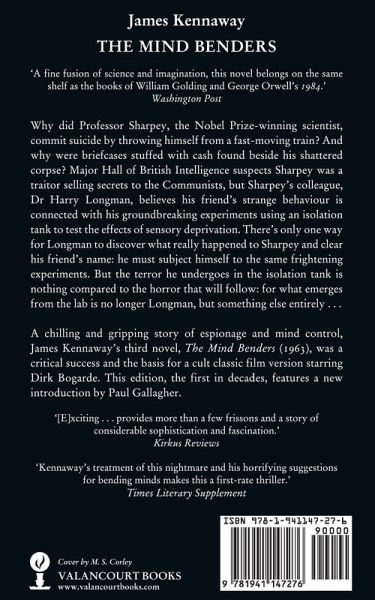 'A fine fusion of science and imagination, this novel belongs on the same shelf as the books of William Golding and George Orwell's 1984.' - Washington Post '[E]xciting . . . provides more than a few frissons and a story of considerable sophistication and fascination.' - Kirkus Reviews 'Kennaway's treatment of this nightmare and his horrifying suggestions for bending minds makes this a first-rate thriller.' - Times Literary Supplement Why did Professor Sharpey, the Nobel Prize-winning scientist, commit suicide by throwing himself from a fast-moving train? And why were briefcases stuffed with cash found beside his shattered corpse? Major Hall of British Intelligence suspects Sharpey was a traitor selling secrets to the Communists. But Sharpey's colleague, Dr Harry Longman, believes his friend's strange behaviour is connected with his groundbreaking experiments using an isolation tank to test the effects of sensory deprivation. There's only one way for Longman to discover what really happened to Sharpey and clear his friend's name: he must subject himself to the same frightening experiments. But the terror he undergoes in the isolation tank is nothing compared to the horror that will follow: for what emerges from the lab is no longer Longman, but something else entirely . . . A chilling and gripping story of espionage and mind control, James Kennaway's third novel, The Mind Benders (1963), was a critical success and the basis for a cult classic film version starring Dirk Bogarde. This edition, the first in decades, features a new introduction by Paul Gallagher.