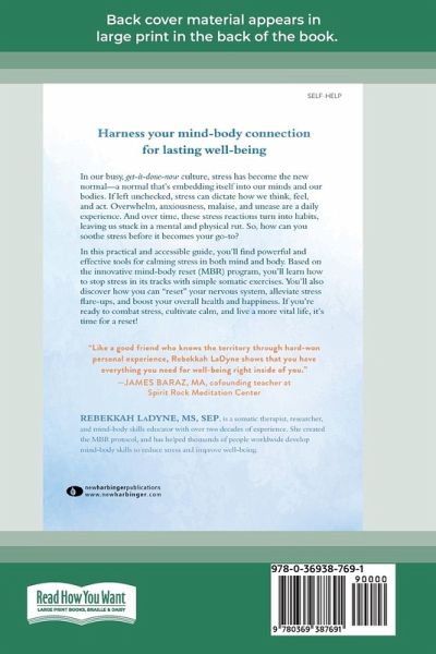 Somatic or ''body-based'' skills are at the cutting edge of wellness and stress reduction. Mind-Body Stress Reset offers readers groundbreaking do-it-yourself techniques designed to help ''reset'' the nervous system, beat stress, and cultivate calm. With this guide, readers will discover body-based self-regulation skills for soothing stress flare-ups in the body, reducing overwhelm, and living a more vital life.
