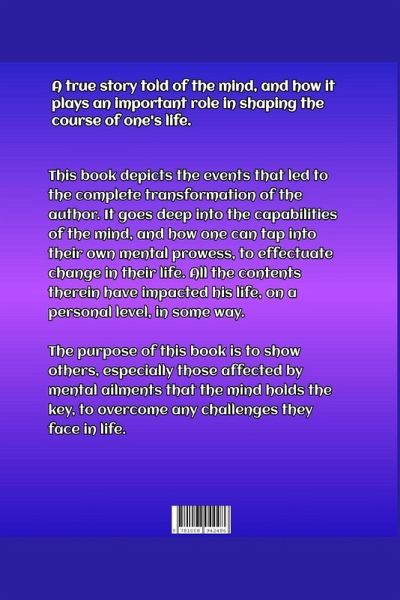 A true story told of the mind, and how it plays an important role in shaping the course of one's life. This book depicts the events that led to the complete transformation of the author. It goes deep into the capabilities of the mind, and how one can tap into their own mental prowess, to effectuate change in their life. All the contents therein have impacted his life, on a personal level, in some way. The purpose of this book is to show others, especially those affected by mental ailments that the mind holds the key, to overcome any challenges they face in life.