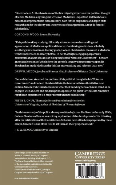 This book provides a compelling and incisive portrait of James Madison, the scholar and political philosopher. Through extensive historical research and analysis of Madison's heretofore underappreciated 1791 'Notes on Government', Madison's scholarly contributions are cast in a new light, yielding a richer, more comprehensive understanding of his political thought than ever before. Tracing Madison's intellectual investigations of republics and philosophers, both ancient and modern, this book invites the reader to understand the pioneering ideas of the greatest American scholar of politics and republicanism - and, in the process, to discover anew the vast possibilities and potential of that great experiment in self-government known as the American republic.