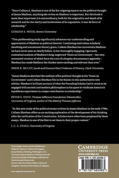 Part I: 1. An itinerant scholar in Mr Jefferson's library Excursus: travels with Anacharsis 2. Circumstantial influences on government 3. The power of public opinion 4. The federal republican polity 5. Postscript Part II: 6. 'Notes on Government' 7. Additional notes on government 8. Madison's convention notes and his letter of October 24, 1787, to Thomas Jefferson 9. Party press essays.