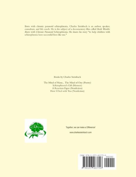 Some people write poetry about themselves; Charles has written poetry with his thoughts, feelings, and emotions from a delusional world. As a person with paranoid schizophrenia, Charles has learned to live in two worlds at the same time. One is our "normal" world and the other is schizophrenic. His poems describe his wanderings in this place that few of us have visited.