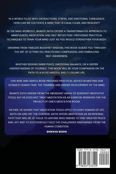 In a world filled with distractions, stress, and emotional turbulence, how can we cultivate a mind that is calm, clear, and resilient? In The Mind Workout, Bhante Sathi offers a transformative approach to mindfulness, meditation, and self-reflection-providing practical techniques to train your mind just as you would strengthen your body. Drawing from timeless Buddhist wisdom, this book guides you through the art of letting go, practicing compassion, and embracing self-awareness. Whether seeking inner peace, emotional balance, or a deeper understanding of yourself, this book will be your companion on the path to a more mindful and fulfilling life.