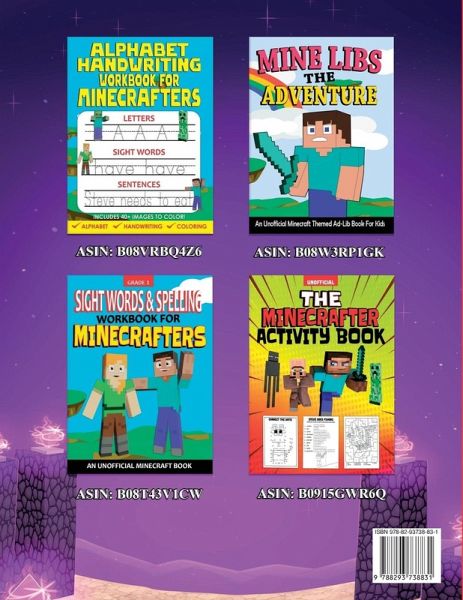 NOT OFFICIAL MINECRAFT PRODUCT. NOT APPROVED BY OR ASSOCIATED WITH MOJANG. Does your kid love coloring, activities & Minecraft? Then this is the book you're looking for! Features: * Tons of pages and activities! * Single-sided pages for no bleed through, easy-to-remove pages * Large size 8.5x11'' * A variety of pages including all minecrafters favorite characters * Hours of fun! * Great gift for all occasions This awesome unofficial Minecraft activity book features every gamer's favorite characters for hours and hours of fun! Scroll up and grab your copy today!