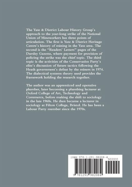 The Yate & District Labour History Group`s approach to the year-long strike of the National Union of Mineworkers has three points of articulation. The first is Yate & District Heritage Centre`s history of mining in the Yate area. The second is the "Readers` Letters" pages of the Dursley Gazette, where payment for provision of policing the strike was the chief topic. The third topic is the activities of the Conservative Party`s elite`s discussion of future tactics following the Heath government`s defeat by the miners in 1974. The dialectical systems theory used provides the framework holding the research together. The author was an apprenticed and operative plumber, later becoming a plumbing lecturer at Oxford College of Art, Technology and Commerce, before making the shift to sociology in the late 1960s. He then became a lecturer in sociology at Filton College, Bristol. He has been a Labour Party member since the 1970s.
