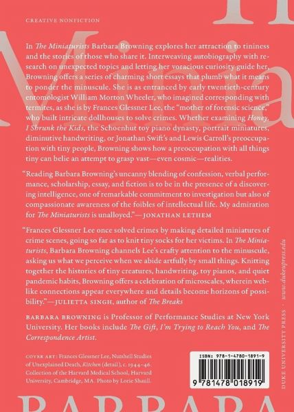 Exploring her attraction to tininess and the stories of those who share it, Barbara Browning offers a series of charming short essays that plumb what it means to ponder the minuscule.