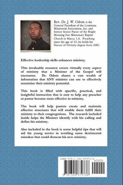 Dr. Odom's book comes to the aid of ministers all across the country who face questions of leadership and ministry. He discusses how the minister is to identify with himself and his calling and provides valuable insight to responding to the call to pastor a new church. It is a great book for use in informal instruction to both young and seasoned ministers to take a closer look at spiritual leadership and how it relates to the Christian ministry. This book is filled with specific, practical, and insightful instruction that is sure to help any preacher or pastor become more effective in ministry