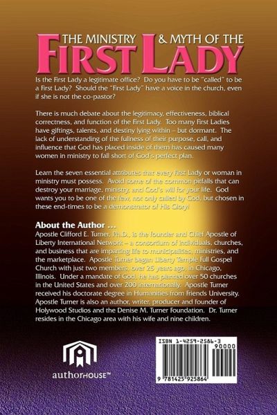 The First Lady is one of the most vital, yet obscure roles in the church. Some see the First Lady as a big-hat wearing, non-stop shopping, St. John wearing, looking-good-but-no-substance woman behind the man of God. Others see the First Lady as a call, a position, and a place of authority that God ordained to fulfill kingdom purposes. God has always entrusted women with power, influence, and purpose. Every woman in ministry, whether a First Lady, Pastor, or deaconess, needs to gain insight and training concerning her call. The Ministry (& Myth) of the First Lady clearly define the attributes necessary for every woman in ministry to be one that "excellest them all" (Proverbs 31:29).
