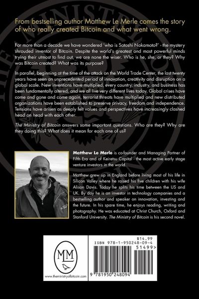 From bestselling author Matthew Le Merle comes the story of who really created Bitcoin and what went wrong. For more than a decade we have wondered 'who is Satoshi Nakamoto?' - the mystery shrouded inventor of Bitcoin. Despite the world's greatest and most powerful minds trying their utmost to find out, we are none the wiser. Who is he, she, or they? Why was Bitcoin created? What was its purpose?In parallel, beginning at the time of the attack on the World Trade Center, the last twenty years have seen an unprecedented period of innovation, creativity and disruption on a global scale. New inventions have multiplied, every country, industry, and business has been fundamentally altered, and we all live very different lives today. Global crises have come and gone and come again, terrorist threats have multiplied and new distributed organizations have been established to preserve privacy, freedom and independence. Tensions have arisen as deeply felt values and perspectives have increasingly clashed head on head with each other. The Ministry of Bitcoin answers some important questions. Who are they? Why are they doing this? What does it mean for each one of us?