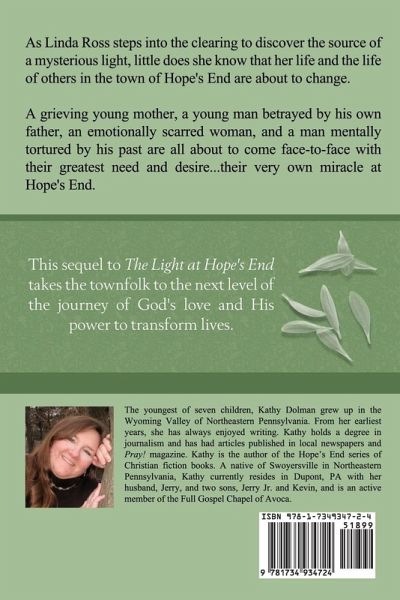This sequel to The Light at Hope's End takes the townfolk to the next level of the journey of God's love and His power to transform lives.As Linda Ross steps into the clearing to discover the source of a mysterious light, little does she know that her life and the life of others in the town of Hope's End are about to change.A grieving young mother, a young man betrayed by his own father, an emotionally scarred woman, and a man mentally tortured by his past are all about to come face-to-face with their greatest need and desire...their very own miracle at Hope's End.