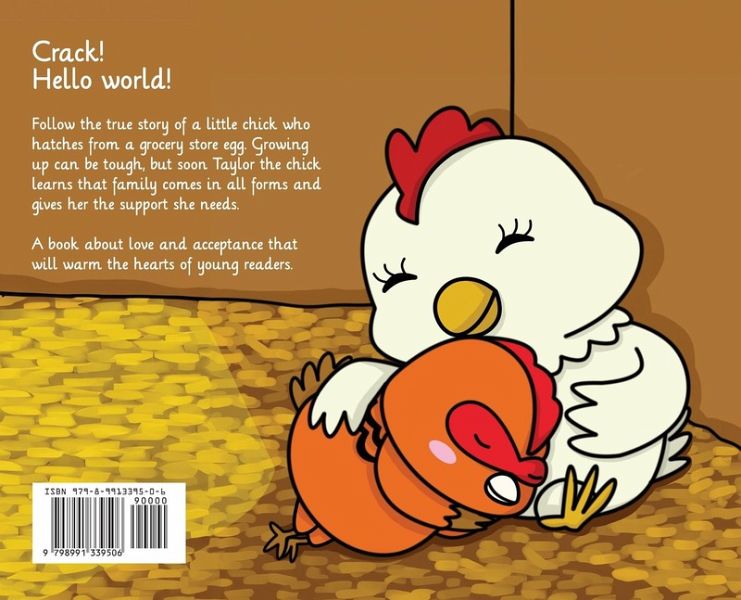 Crack! Hello world! Follow the true story of a little chick who hatches from a grocery store egg. Growing up can be tough, but soon Taylor the chick learns that family comes in all forms and gives her the support she needs. A book about love and acceptance that will warm the hearts of young readers.