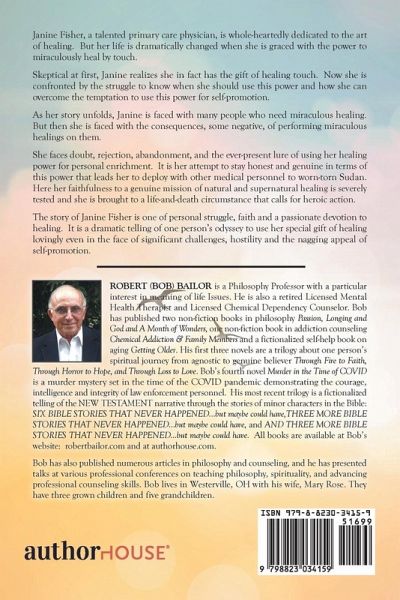 Janine Fisher, a talented primary care physician, is whole-heartedly dedicated to the art of healing. But her life is dramatically changed when she is graced with the power to miraculously heal by touch. Skeptical at first, Janine realizes she in fact has the gift of healing touch. Now she is confronted by the struggle to know when she should use this power and how she can overcome the temptation to use this power for self-promotion. As her story unfolds, Janine is faced with many people who need miraculous healing. But then she is faced with the consequences, some negative, of performing miraculous healings on them. She faces doubt, rejection, abandonment, and the ever-present lure of using her healing power for personal enrichment. It is her attempt to stay honest and genuine in terms of this power that leads her to deploy with other medical personnel to worn-torn Sudan. Here her faithfulness to a genuine mission of natural and supernatural healing is severely tested and she is brought to a life-and-death circumstance that calls for heroic action. The story of Janine Fisher is one of personal struggle, faith and a passionate devotion to healing. It is a dramatic telling of one person's odyssey to use her special gift of healing lovingly even in the face of significant challenges, hostility and the nagging appeal of self-promotion.