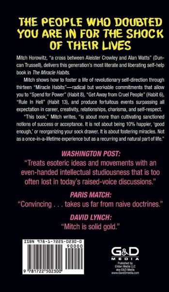 The People Who Doubted You Are In for the Shock of Their Lives Mitch Horowitz, "a cross between Aleister Crowley and Alan Watts" (Duncan Trussell), delivers this generation's most literate and liberating self-help book in The Miracle Habits. Mitch shows how to foster a life of revolutionary self-direction through thirteen "Miracle Habits"-radical but workable commitments that allow you to "Spend for Power" (Habit 8), "Get Away from Cruel People" (Habit 6), "Rule In Hell" (Habit 13), and produce fortuitous events surpassing all expectation in career, creativity, relationships, charisma, and self-respect. "This book," Mitch writes, "is about more than cultivating sanctioned notions of success or acceptance. It is not about being 10% happier, 'good enough,' or reorganizing your sock drawer. It is about fostering miracles. Not as a once-in-a-lifetime experience but as a recurring and natural part of life." Washington Post: "Treats esoteric ideas and movements with an even-handed intellectual studiousness that is too often lost in today's raised-voice discussions." Paris Match:"Convincing...takes us far from naive doctrines." David Lynch: "Mitch is solid gold."