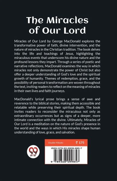 Miracles of Our Lord by George MacDonald explores the transformative power of faith, divine intervention, and the nature of miracles in the Christian tradition. The book delves into the life and teachings of Jesus, highlighting the miraculous events that underscore his divine nature and the profound lessons they impart. Through a series of poetic and narrative reflections, MacDonald examines the way in which miracles not only demonstrate the power of Christ but also offer a deeper understanding of God's love and the spiritual growth of humanity. Themes of redemption, grace, and the possibility…mehr